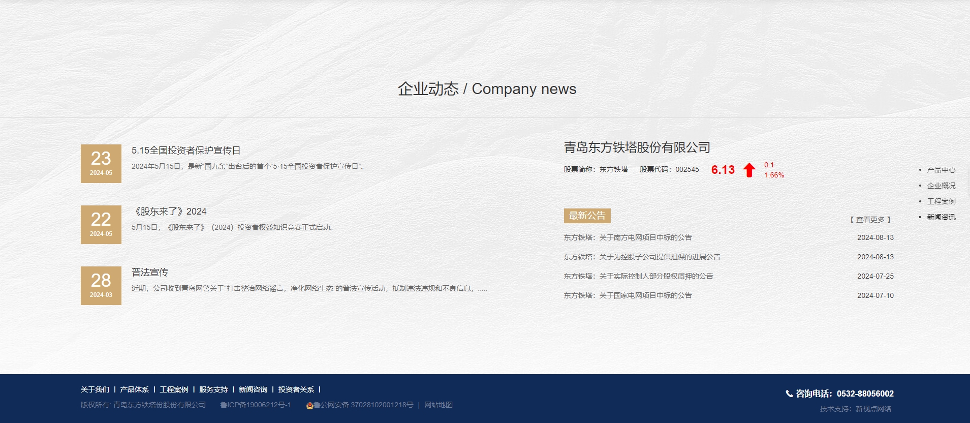 青島東方鐵塔股份有限公司是一家股份制大型企業(yè),主營鋼結構產品業(yè)務,其前身青島東方鐵塔公司始建于1982年,1996年組建青島東方鐵塔集團有限公司,2000年改制為青島東方鐵塔股份有限公司。2011年2月11日,公司在深圳證券交易所掛牌上市,股票代碼: 002545,股票簡稱: 東方鐵塔。2016年10月,公司完成重組,由單一的鋼結構制造企業(yè)轉變?yōu)殇摻Y構與鉀肥產業(yè)并行的雙主業(yè)上市公司。